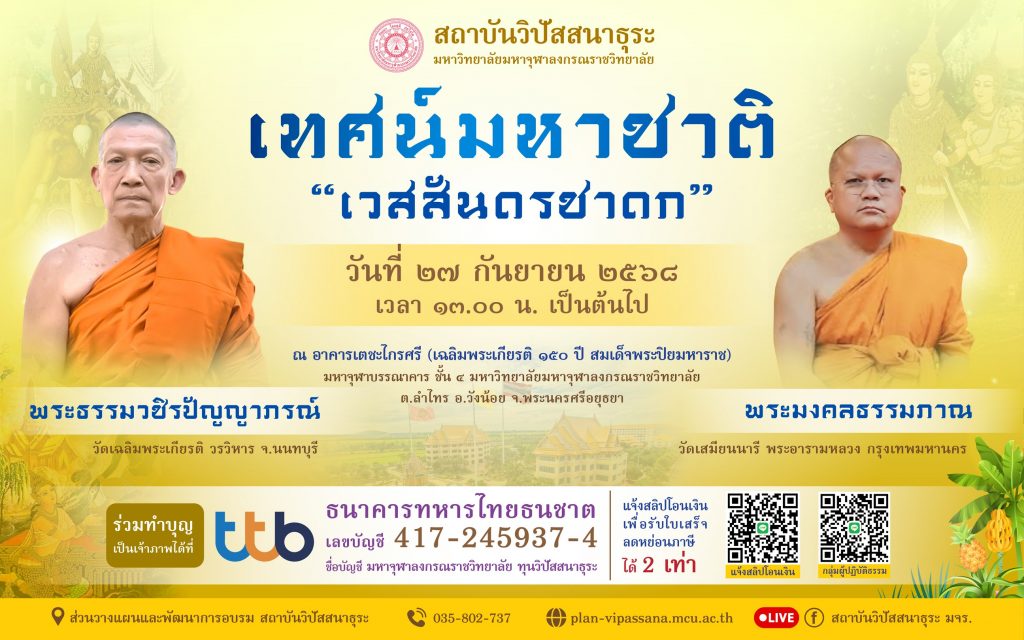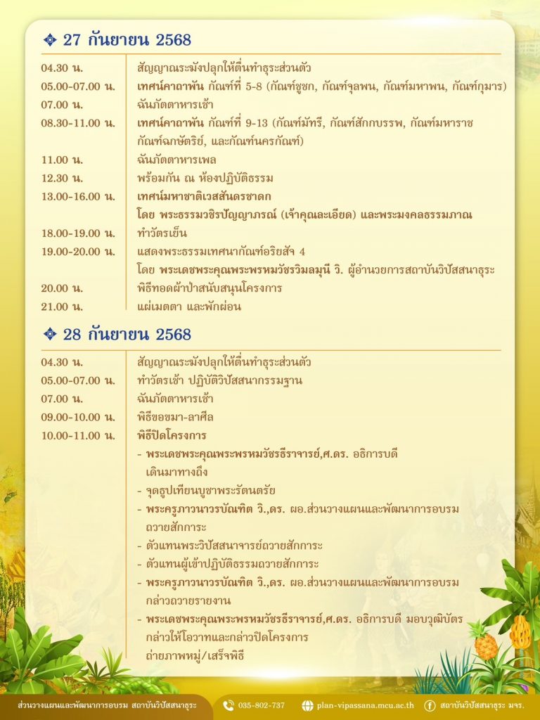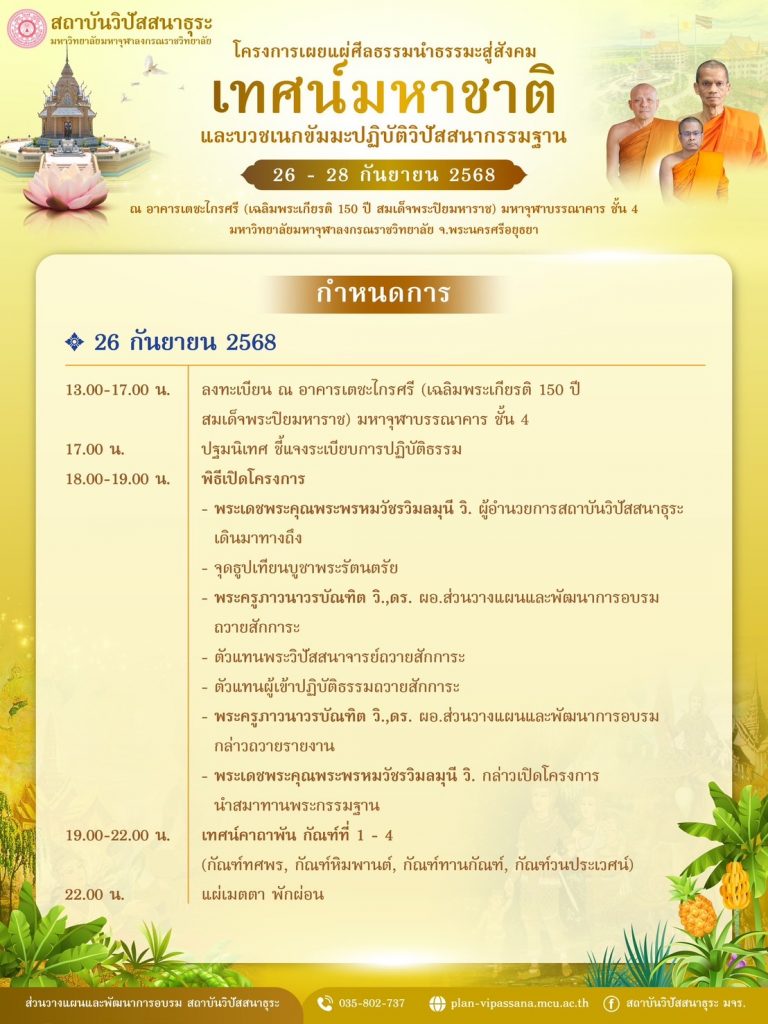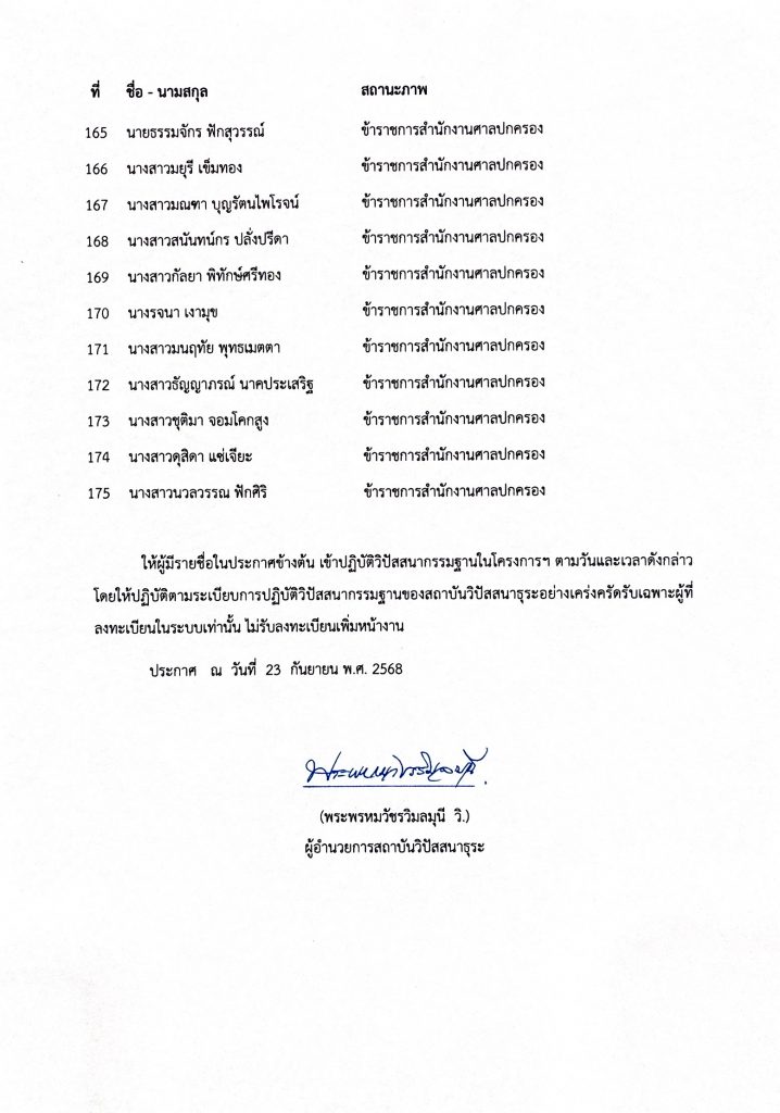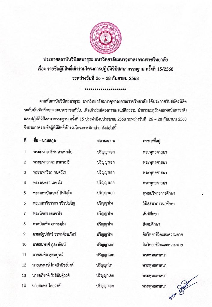 ประกาศรายชื่อผู้มีสิทธิ์เข้าร่วมโครงการปฏิบัติธรรม 26-28 ก.ย.68