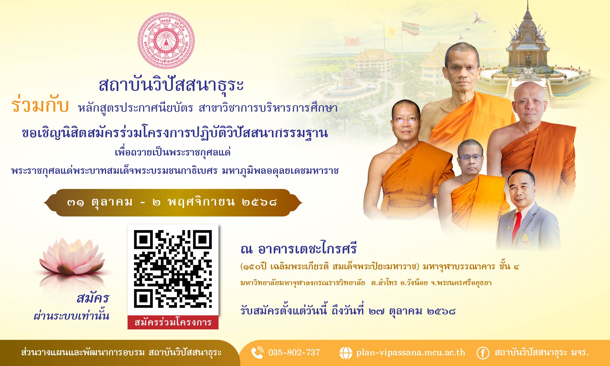 ● สถาบันวิปัสสนาธุระร่วมกับหลักสูตรประกาศนียบัตร สาขาวิชาบริหารการศึกษา
