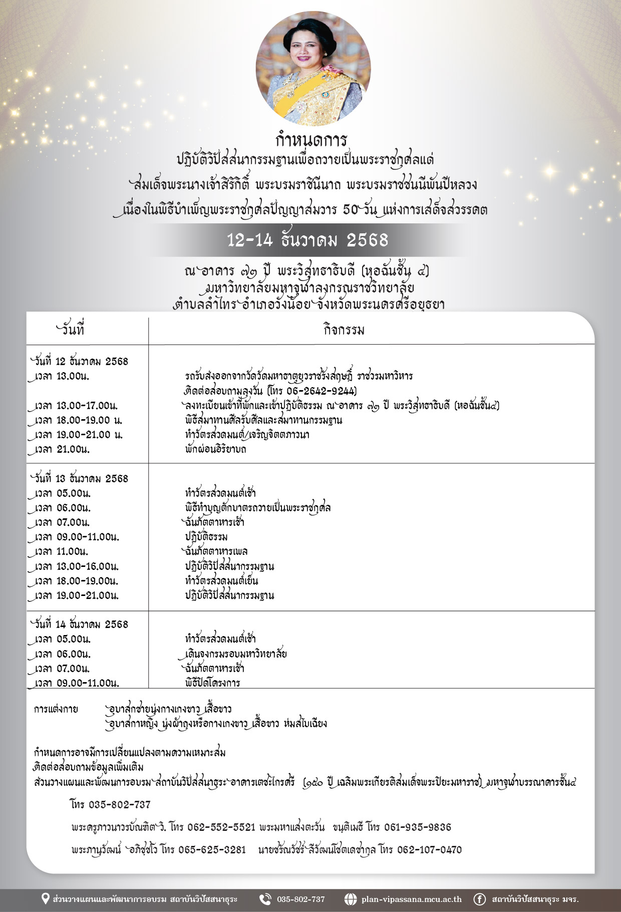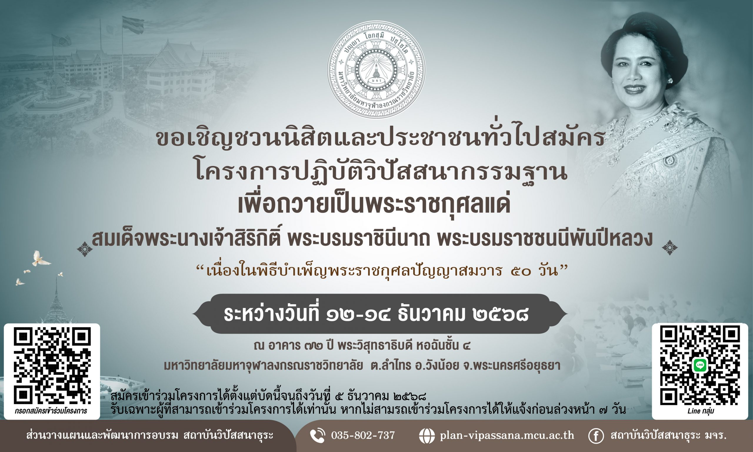 ❇️ขอเชิญนิสิตและประชาชนทั่วไปร่วมปฏิบัติวิปัสสนากรรมฐานเพื่อถวายเป็นพระราชกุศลแด่