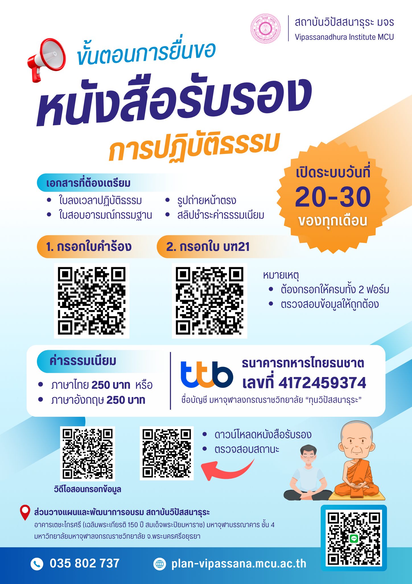 “เปิดระบบยื่นขอหนังสือรับรองการปฏิบัติธรรมนิสิตบัณฑิตศึกษา”ครั้งที่ 2 /2569
