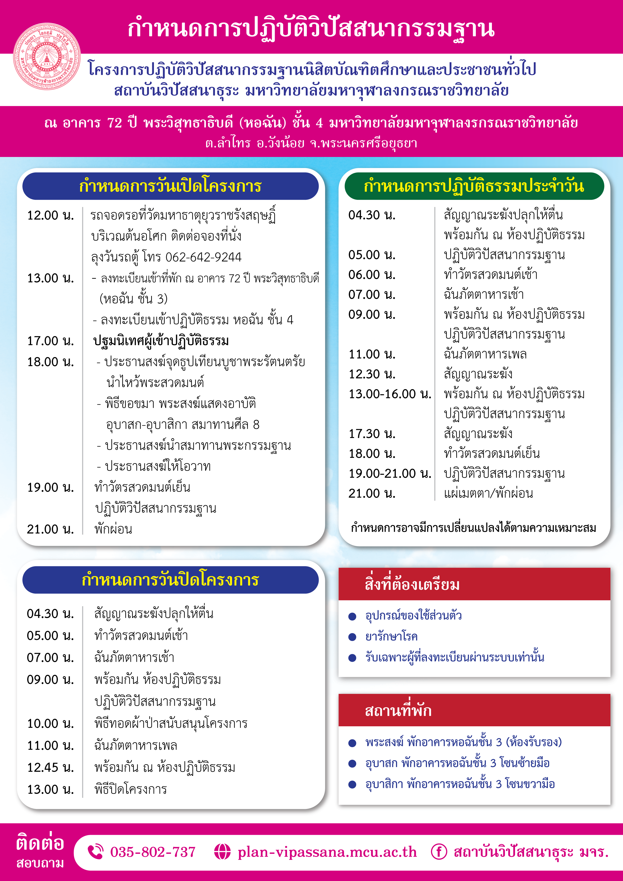 📞ติดต่อสอบถามข้อมูลเพิ่มเติม ส่วนวางแผนและพัฒนาการอบรม สถาบันวิปัสสนาธุระ โทร: 035-802-737