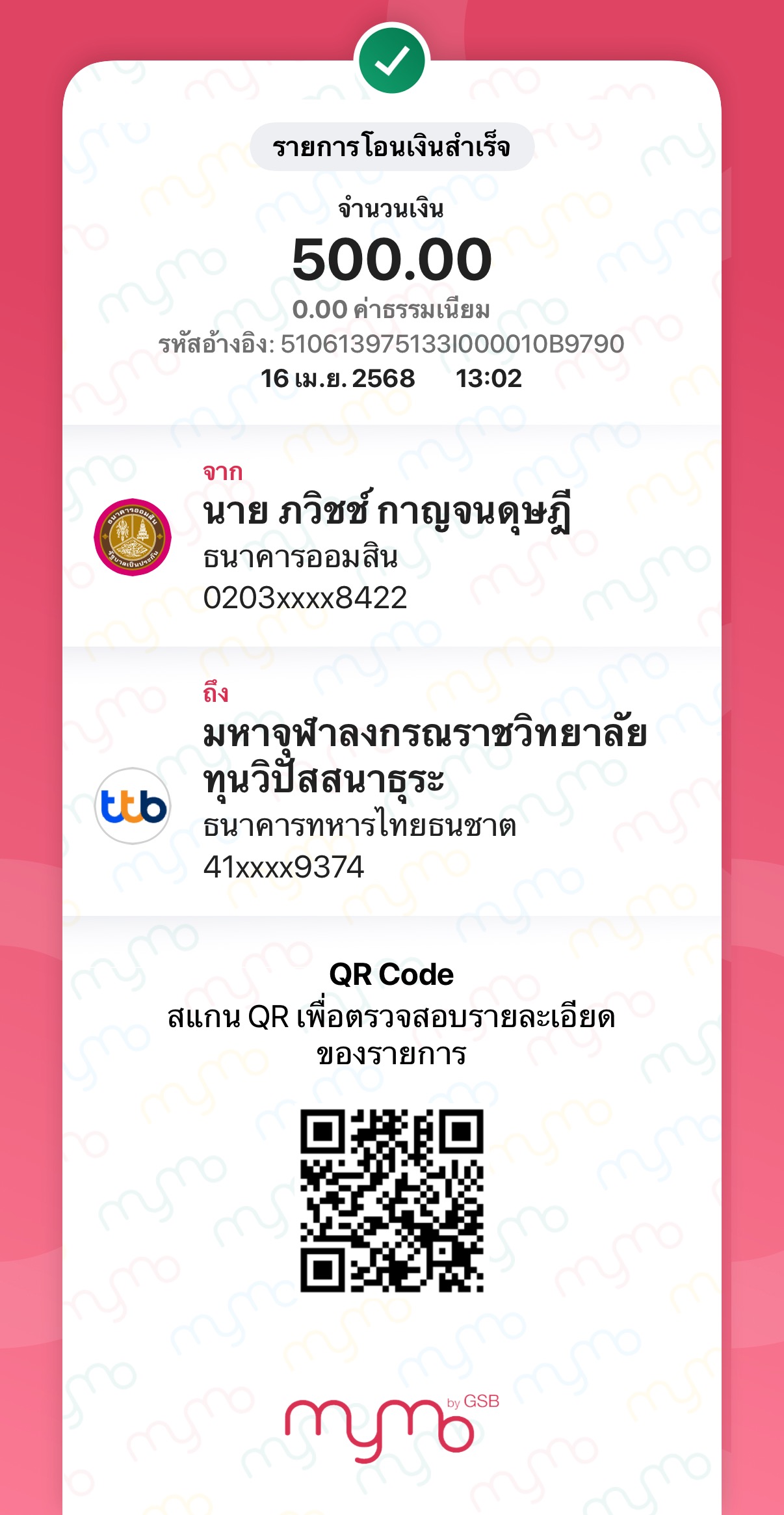 คุณ ณภัทชา ยังพิทักษ์ | - | 500.00 | 15/12/2025 08:21:04 | |